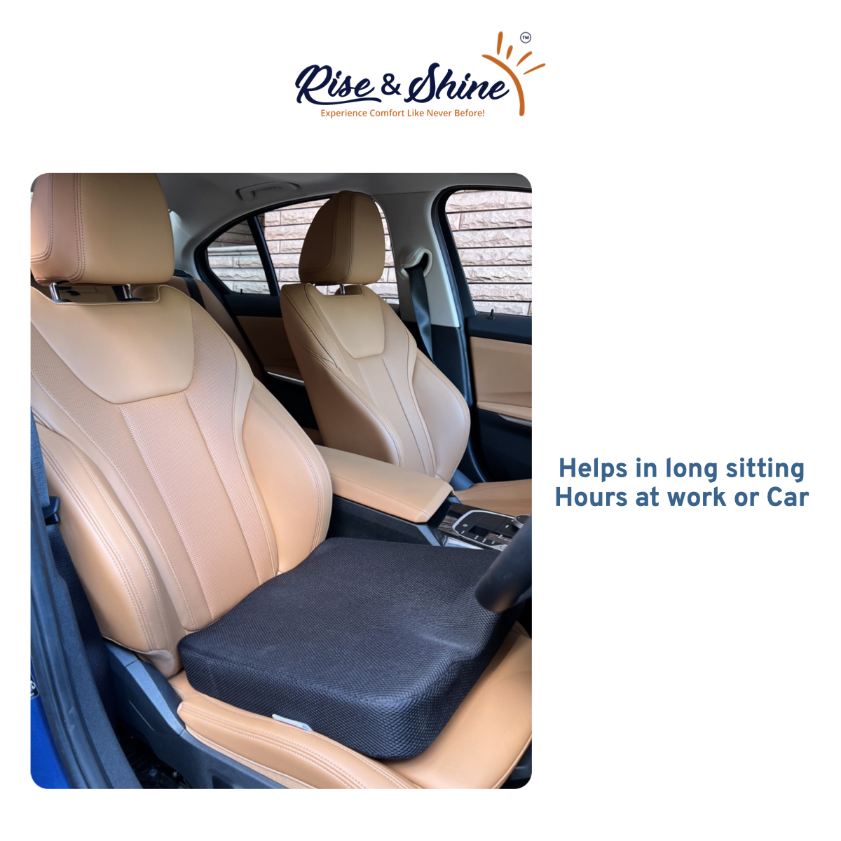 Our Rise & Shine™ Coccyx Cushion is perfectly designed to relieve and treat a wide array of pains associated with sitting of long hours. It corrects the alignment of the spine and keeps you upright while using your Computer. One can also feel the comfort while travelling in cars for long journeys.