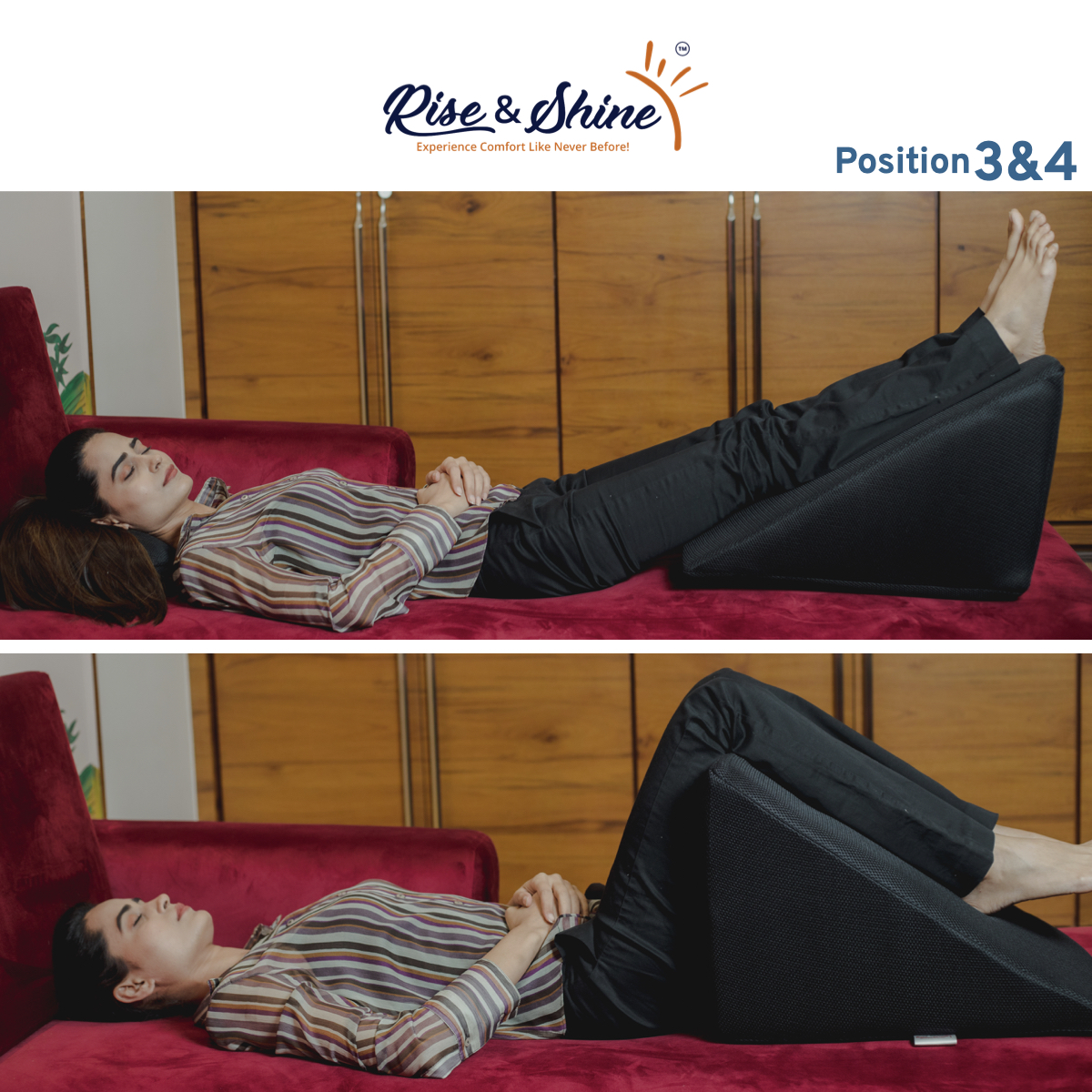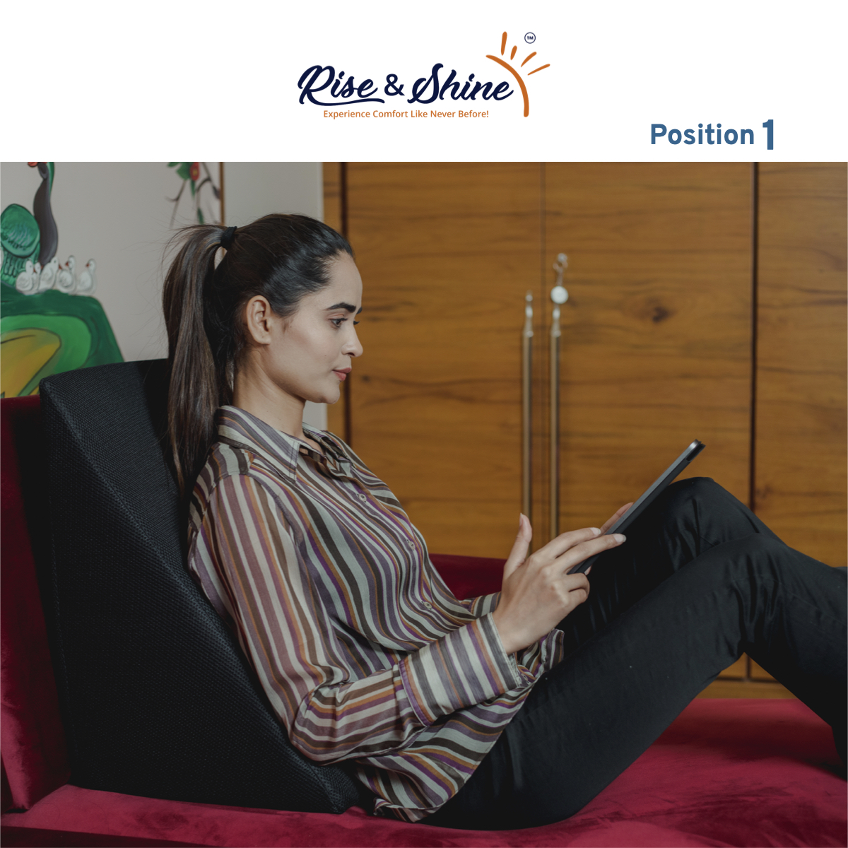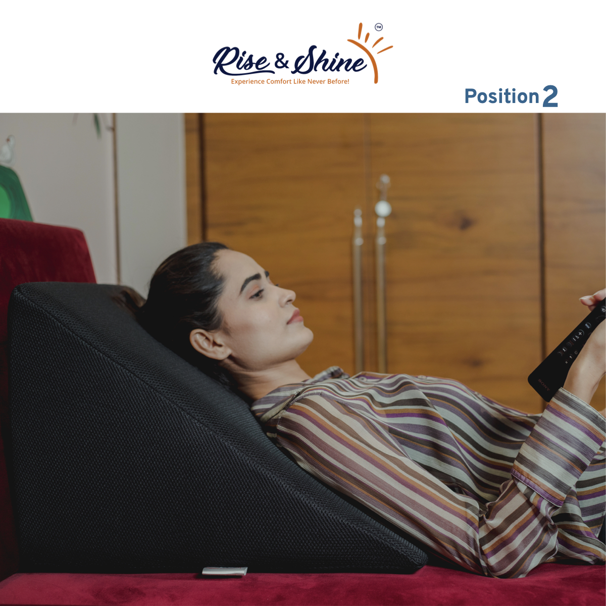 Our Rise & Shine Wedge Pillow will bring you into correct sitting posture and keep you upright while using your laptop, Watching TV, Reading a book or just relaxing. The wedge pillow is rightly elevated to support any position. Can be used in multiple positions while lying down, sitting, and sleeping.