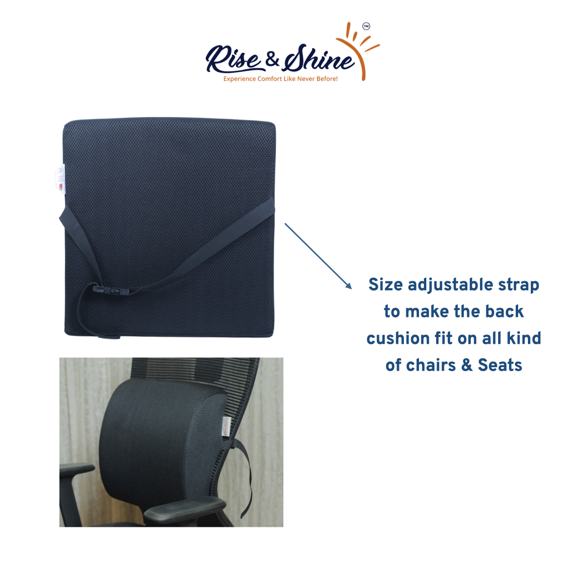 Experts estimate that up to 80% of the population will experience back pain at some time in their lives as they have to spend most of time on office/computer chair. Our Rise & Shine™ Lumbar Back Cushion will bring you into correct sitting posture and keep you upright while using your desktop or laptop. One can also feel the comfort while traveling in cars for long journeys. We have deeply studied your seat profiles to give the best support for your back.